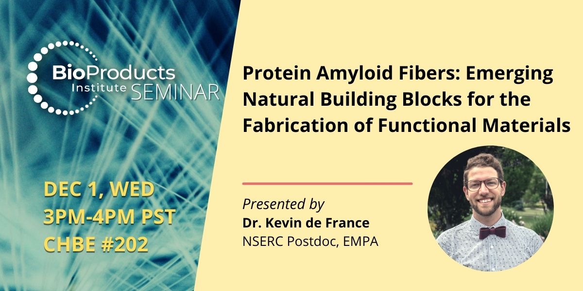 Join us to learn about fibrous proteins as building-blocks in the fabrication of functional materials! In this BPI seminar, Dr. Kevin De France will highlight the preparation and application of protein amyloid fibres.