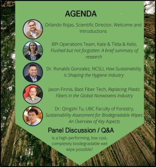 Single-use disposable wipes are an increasing environmental, economic and social challenge, and these effects are accelerating dramatically due to the COVID-19 pandemic. Join the BPI, industry stakeholders, and researchers for a webinar on the topic of achieving a cost competitive and high performing biodegradable wet wipe.