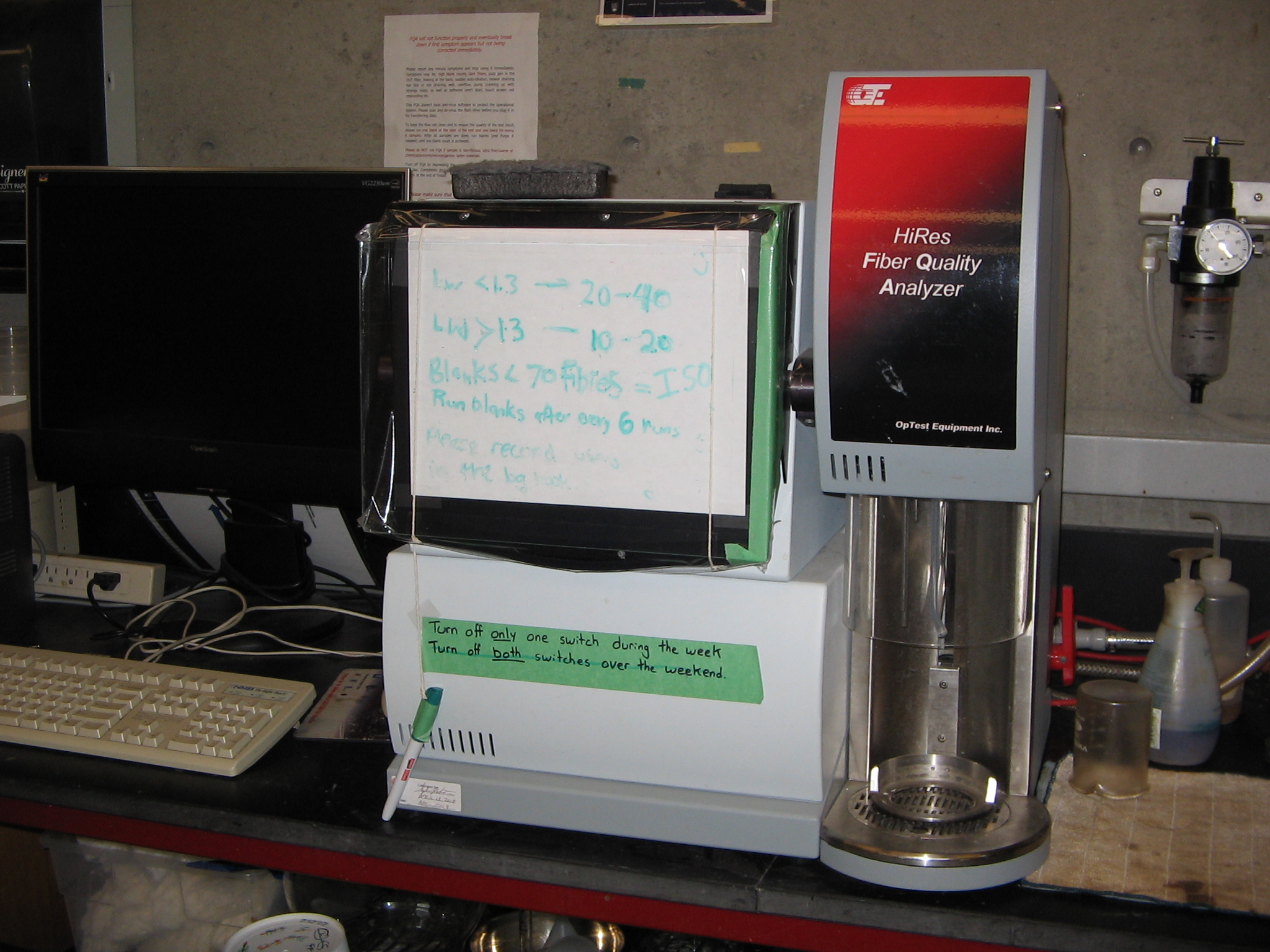 Measures fiber length, width, curl, % numeric fines and kink in diluted pulp samples. Also provided fiber length distribution