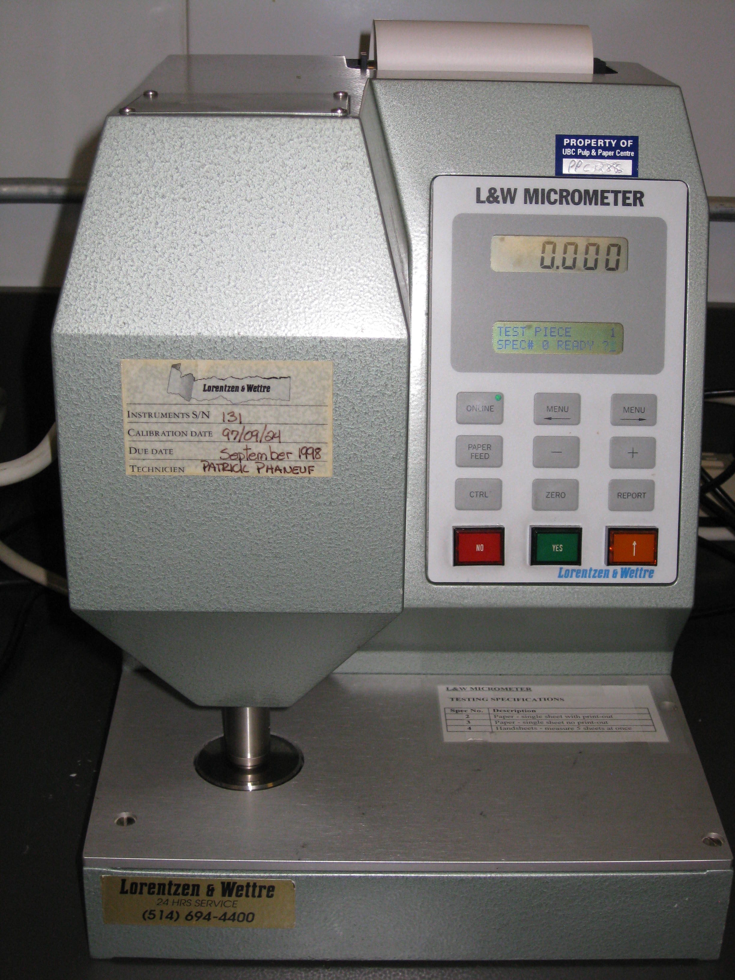 Paper surface testing, exact thickness measurements